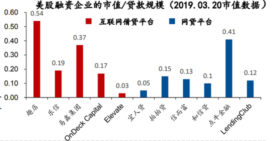 对于此类将互联网与部分银行业务相结合的互金企业仍处于一个快速成长期,因此不能简单的采用传统银行类的PB估值法来衡量企业。因此我们可以根据企业不同的业务线,在STOP估值的基础上,对不同业务采用如市值/有效交易规模,市值/发债贷款规模的分步估值。