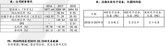 考虑公司营收体量相对较大,但受营业成本的影响,导致公司现金流处于持续支出的状态,净利润相对较低,不适合PE估值。因此我们采用行业PS估值的方法,对比近期全球市场电子设备、仪器PS均值,考虑科创板市场情绪,我们建议采用A股均值,预计PS为5.5-8.2X,公司市值在202-300亿元间。