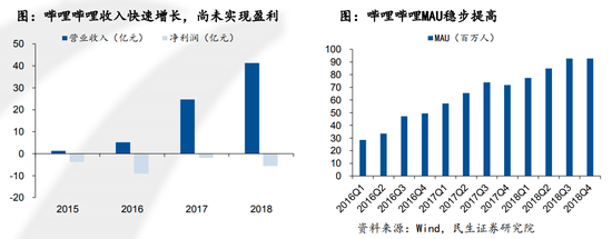 案例1:2016Q1-2018Q4哔哩哔哩月活跃用户(MAU)从28.5万人提高到92.8万人,三年间月活数增长三倍。公司在2015-2018年间营业收入随月活数的提高快速增长,但截至2018年仍未实现盈利。