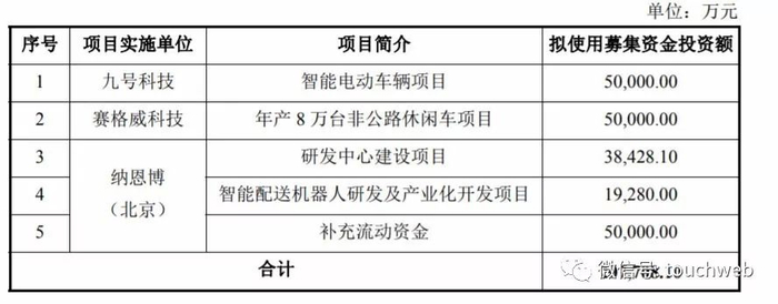 剩下的主要用于纳恩博(北京)运营,其中,研发中心建设项目所需资金3.82亿元、智能配送机器人研发及产业化开发项目1.92亿元、补充流动资金5亿元。