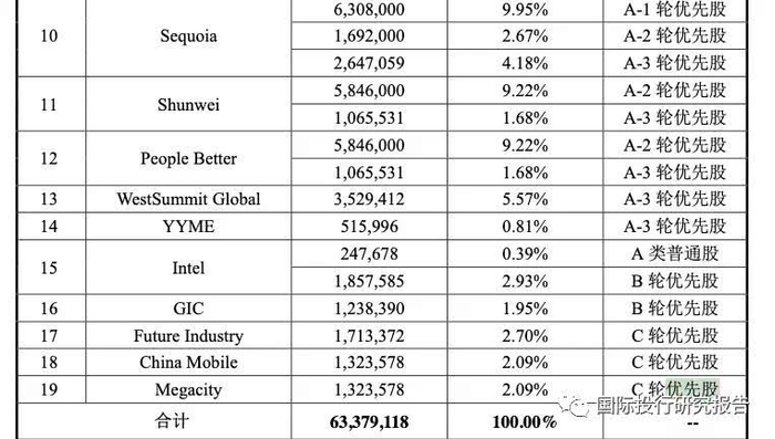 这个公司还有非常多的优先股,其中主要人物 是Sequoia和Shunwei