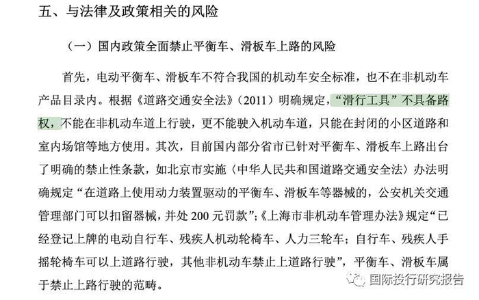 投行在报告中都清楚说了这个平衡车和代步车有上路的风险。而明明融资是做电动自行车和休闲车!!