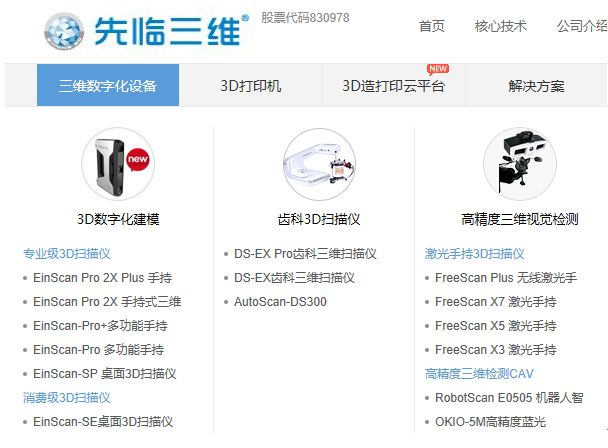 先临三维成立于2004年,是一家3D打印机、3D扫描仪和3D数字化设备生产商,有20多款产品应用在工业制造、生物医疗、教育消费等领域,有数万家企业和医疗、教育机构客户。政府3D打印项目服务也是公司的一大收入来源。