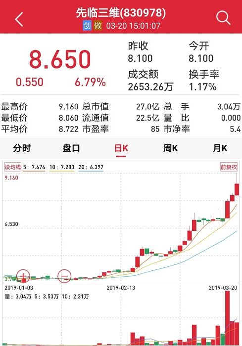 经过三天暴涨,先临三维(830978.OC)于周四停牌,由于身披科创板概念,公司今年以来累计上涨103%,近期更是新三板上交易最为活跃的股票之一。