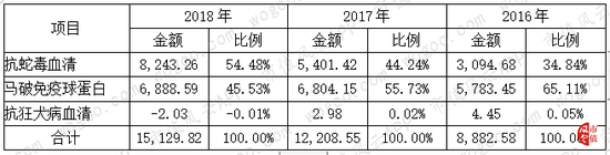 其中抗蛇毒血清收入增长最为迅猛,最近三年的复合增长率高达63.21%,占营业收入的比重从2016年的34.84%跃升至54.48%,成为公司的第一大主营业务。