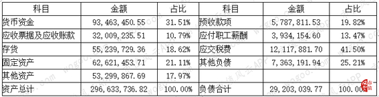 资产端主要是货币资金、应收款项、存货和固定资产,其中货币资金占总资产比例达31.51%,其次是固定资产,占比21.11%,应收款项和存货分别占10.79%、18.62%,这四项资产合计占比为82.03%。
