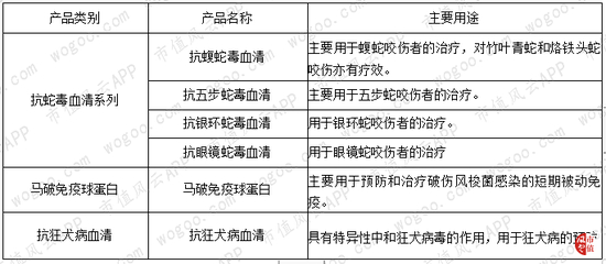公司的主要产品中,抗蛇毒血清为目前国内独家产品,世界卫生组织指出抗蛇毒血清是治疗蛇伤的唯一特效药;马破免疫球蛋白是破伤风抗毒素的升级产品,目前为国内独家生产,用于破伤风的预防和治疗,其副反应显著低于国内常用的TAT产品。