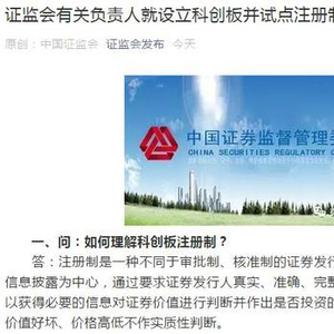 科创板开板在即,证监会有关负责人就设立科创板并试点注册制有关问题答记者问,11963字15个问题,涵盖了科创板、注册制的方方面面。