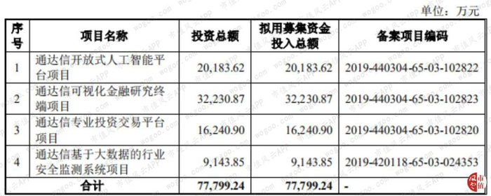 此次科创板申报的募投项目都是现阶段的热门概念,像通达信开放式人工智能平台项目和可视化金融研究终端项目。