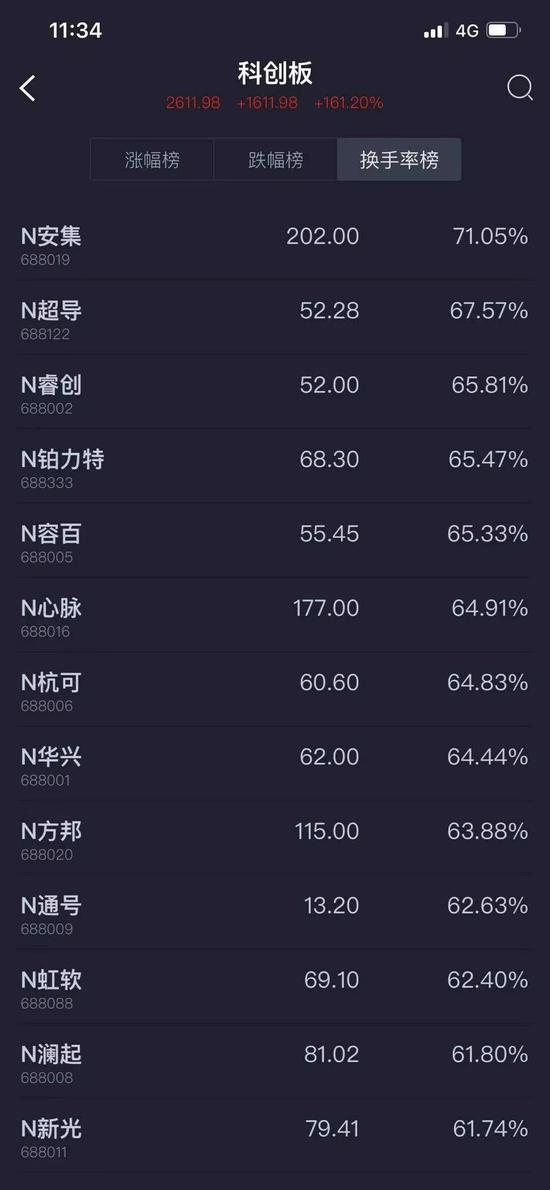 截至午间收盘,N安集换手率达到71.05%,23只股票换手率超过60%,仅N天宜、N中微换手率低于60%,分别为59.58%、59.10%。