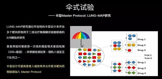 我们中心现在就在做伞式试验。因为我们病人多、研究项目多,不管你是什么病人,不管是哪一个靶点,我都有药给你治,都有相对应的临床试验让你参加。选择平台的时候,要非常关注。