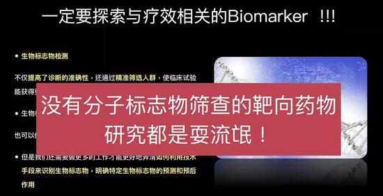 在你们投资时,如果厂家告诉你,我是一个针对某一个靶点的抗肿瘤药物,你要问他有没有分子标志物。他说没有,不要投,一定要有才能投。
