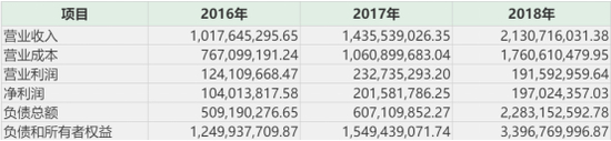 2016至2018年,公司分别实现营业收入10.17亿元、14.35亿元、21.30亿元,对应同期净利润分别为1.04亿元、2.02亿元、1.97亿元。