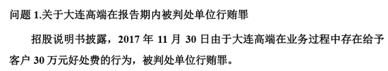 科创板审核中心第二轮问询的第一个问题就是大连高端在报告期内被判处单位行贿罪。