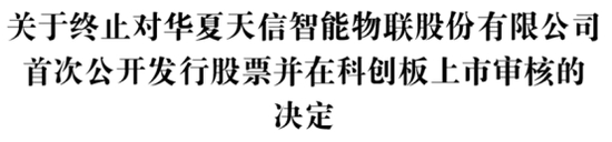 10月21日,上交所在网站公布《关于终止对华夏天信智能物联股份有限公司 首次公开发行股票并在科创板上市审核的决定》,华夏天信成为第13家被终止审核的科创板拟上市公司,也成为中泰证券保荐的科创板拟上市公司中继北京国科环宇科技之后,第二家被终止审核的公司。