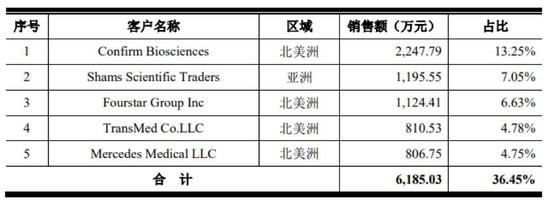 在外销收入中,有很大一部分是来自美国市场。报告期内,销往美国地区的营收占比分别为40.33%、48.28%、53.95%和55.15%,呈逐步上升趋势。在历年销售的前五大客户中,均有四家是来自美国的公司。客户集中度方面,2016年至2019年上半年公司对前五大客户的销售额占比在三成到四成之间。