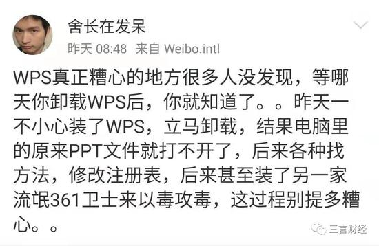 还有,你以为卸载就能解决问题了吗?卸载之后也不让你省心。网友指出,不小心装了WPS,立马卸载,但原来的PPT文件就神奇的无法打开了。