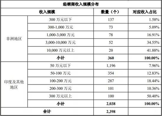 在非洲扎根多年的传音控股,在线下渠道建设方面,也是其他手机厂商无可比拟的。2008年,传音控股在尼日利亚建立了第一个分支机构,之后相继在20多个非洲国家成立了分公司和办事处,47家海外子公司中超过一半都在非洲(其余多在印度)。目前,传音控股在全球70多个国家和地区销售产品,并与2,000多家经销商建立了合作关系,其中,在非洲地区的360个经销商中有150个年收入规模破千万。