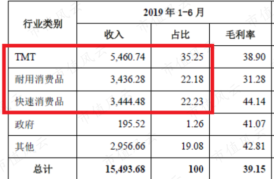 TMT、快速消费品、耐用消费品三个领域的收入,占公司总收入的80%以上。