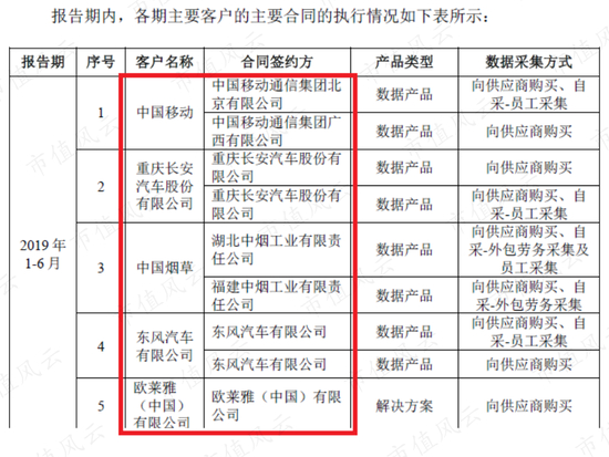 根据慧辰资讯披露的2019年上半年部分主要合同,其客户基本都是一些大型企业,比如中国移动、中国烟草、东风汽车、华为等等。