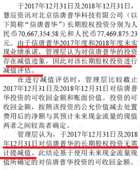 目前慧辰资讯收购信唐普华的长期股权投资有一定问题,减值并不充分。