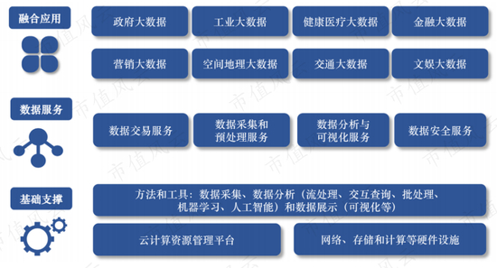根据《2019中国大数据产业发展白皮书》,整个大数据产业链可划分为三个层次,即基础支撑、数据服务和融合应用。