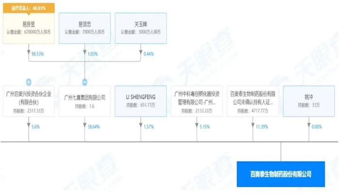 百奥泰成立于2003年,易贤忠控制的七喜控股后来于2016年入资。