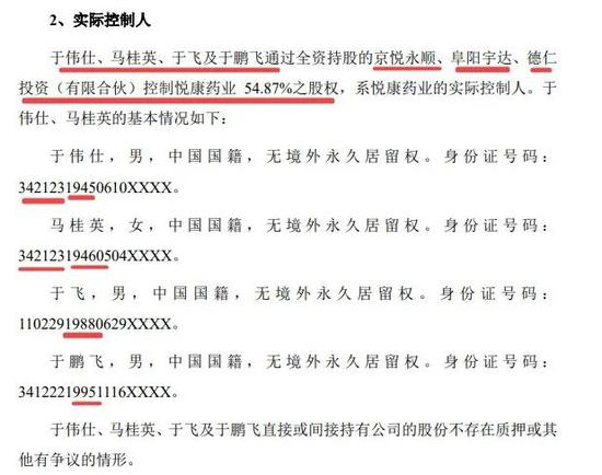 招股书对悦康药业董事长、实控人于伟仕的介绍非常简单,仅有出生年月、学历和现任职务。