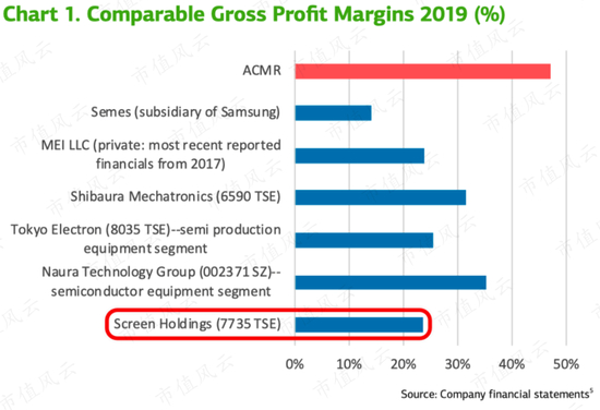 但和全球半导体清洗设备商对比,ACMR毛利率是最高的,甚至比占据全球清洗设备40%市场份额的巨头Screen(DNS)毛利率的23.7%还高很多。