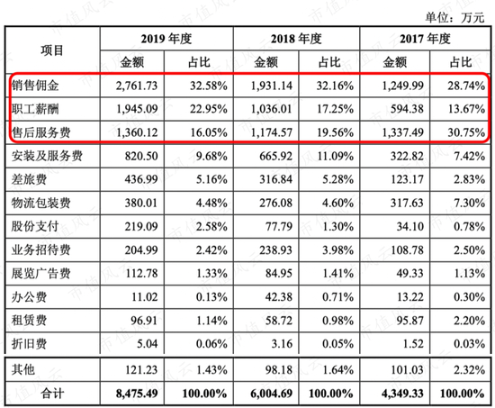 盛美股份销售费用支出较大的是销售佣金、职工薪酬和售后服务费(由预计负债转入),为何销售佣金比职工薪酬还多呢?