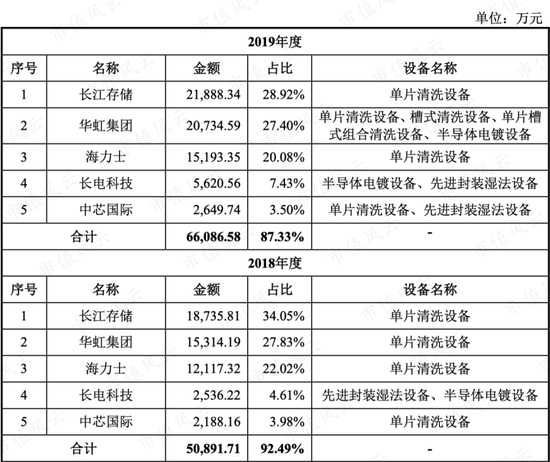 2017年和2018年也通过美国ACMR销售半导体清洗设备,最终客户是国内的武汉新芯集成电路制造有限公司以及长江存储。