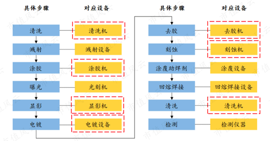 (红色方框标注为后道封装过程盛美股份可生产的设备)