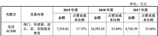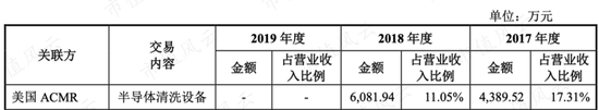 盛美股份解释,由于控股股东ACMR注册在美国,采购美国、日本供应商的产品较为便利,而且有一定的价格优势,因此也通过ACMR采购一些原材料,2017年-2019年盛美股份向关联方AMCR采购的金额分别占到营业成本的33.66%、33.84%、17.72%。