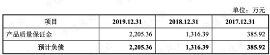 客户验收之后,假如设备出现问题,盛美股份还要出现进行维修,卖出的设备越多预计的维修费就越多,2017年-2019年预期负债分别为385万、1316万、2205万。