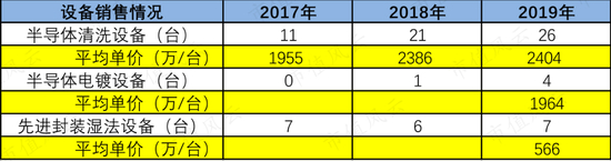 盛美股份一台设备也要上千万。经测算公司披露的数据:半导体清洗设备2017年-2019年平均单价为1995万、2386万、2404万。2019年半导体电镀设备平均单价为1964万/台,先进封装湿法设备便宜很多,均价仅需566万/台。