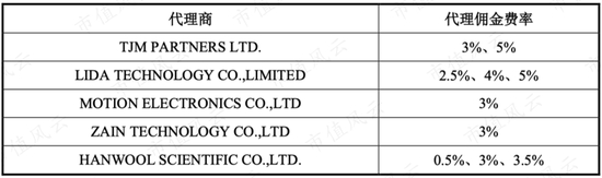 因为盛美股份主要通过代理商开拓市场,2017年-2019年通过代理商实现的销售收入占总收入比例为94.99%、91.53%、91.18%,需要支付给代理商的佣金率一般在2.5%-5%之间。