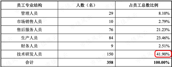 截至2019年底,盛美股份拥有专利232项,其中发明专利227项,技术人员有150名,为总人数的41.9%,占比最高。
