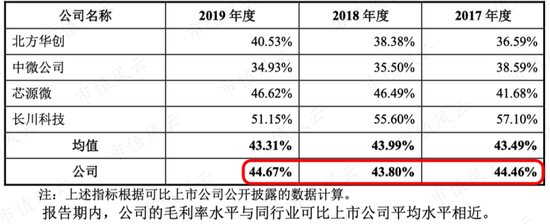 盛美股份在招股说明书中,毛利率对比选择了北方华创、芯源微、长川科技这三家公司,得出的结论是毛利率和可比公司平均水平相近。