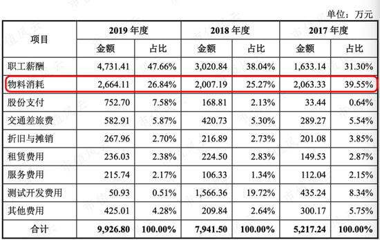 研发费用占比最高的为职工薪酬,其次为物料消耗,为何物料消耗这么高?做空报告中对此做了质疑,怀疑是原材料采购的成本。