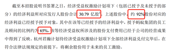 蚂蚁集团的员工持股计划,让在蚂蚁集团的员工成为真正富裕起来的打工人。根据招股书显示,在员工持股激励计划项目下,授予股份合计达30.79亿股,约有92%也就是28.32亿股已授予激励对象。获益的蚂蚁集团员工及顾问包括65%,按截至2020年6月30日的总员工数16660人计算,大概有10829名员工及顾问已获得股权激励。