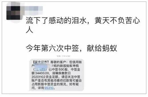 蚂蚁打新结果出炉!70.17万个中签号里有你吗?中一签或赚5万?陈光明、林园笑了