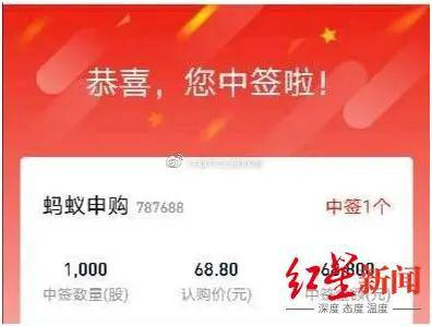 蚂蚁打新结果出炉:70.17万个中签号里有你吗?中一签或赚5万?