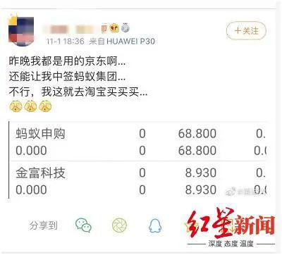 11月1日,蚂蚁集团公布中签情况。