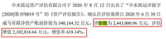 威马汽车虽然持续亏损,但并不影响公司资产增长。2020年8月12日,中水致远资产评估有限公司出具关于威马汽车的资产评估报告,威马汽车净资产账面价值为34.02亿元,评估值达244.3亿元,资产增长618.14%。