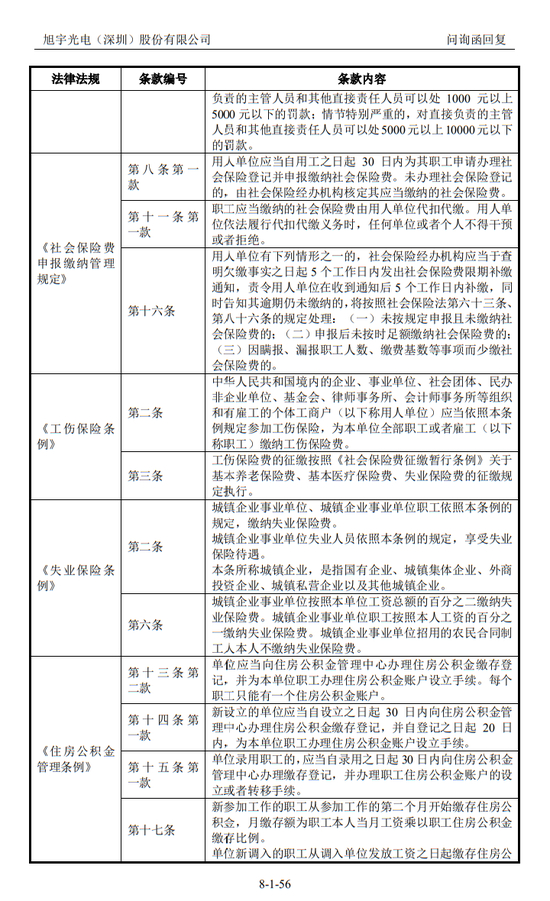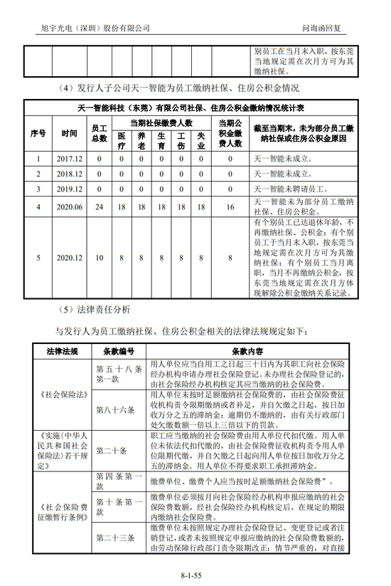 同时,经登录广东省行政执法信息公示平台(广东省人民政府办公厅主办的用于公示广东省内各地市、各级别政府部门有关行政许可、处罚、强制、征收、征用、检查等执法结果的平台)、深圳市人力资源和社会保障局行政许可和行政处罚双公示平台、深圳市住房公积金管理中心行政执法公示平台查询,发行人自其前身旭宇有限成立之日(2011 年 1 月 12 日)起至今,不存在因违反社会保险、住房公积金相关法律法规而被处以行政处罚的情形。