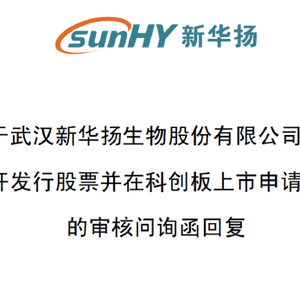 中华网财经1月13日讯 中华网财经了解到,武汉新华扬生物股份有限公司(下称“新华扬”)回复科创板首轮审核问询。