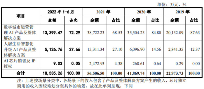 根据招股书,云天励飞成立初期主要专注于数字城市运营管理,并在此基础上利用积累的技术优势拓展开发了人居生活智慧化升级业务。在人居生活场景下的业务拓展尚在初期,人居生活场景下业务收入的成长存在一定不确定性,预计在未来较长一段时间仍将以数字城市治理业务为主。