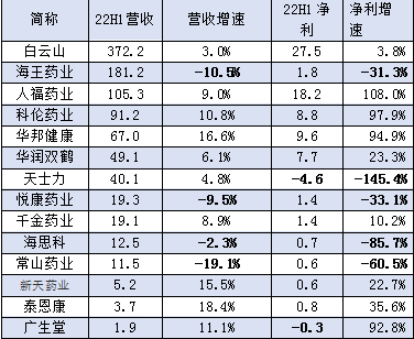 观察其中的A股上市公司,从营收和净利润角度,如下表。从上市公司营业收入角度看,白云山372亿元遥遥领先。海王药业181亿元位居第二,人福药业105亿元居第三。