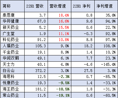 从营收增幅角度看,泰恩康、华邦健康、新天药业、广生堂、科伦药业上半年营收增幅超过10%。常山药业、海王药业上半年营收降低超过10%。海思科、悦康药业营收增幅为负。