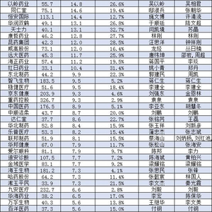 健康元 85.6 25.1 29.3% -2.6% 0.1 朱保国 俞雄 赵凤光